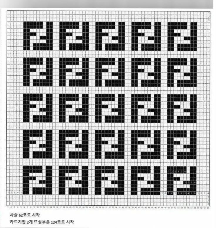 Nellโimmagine trovi lo schema a griglia per riprodurre fedelmente il motivo geometrico che caratterizza questo modello. Ogni “F” viene lavorata alternando due colori a contrasto (tipicamente beige e nero) per ottenere l’effetto iconico. Questo schema puรฒ essere seguito punto dopo punto per ricreare il disegno con precisione.